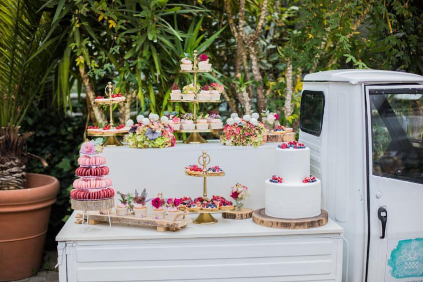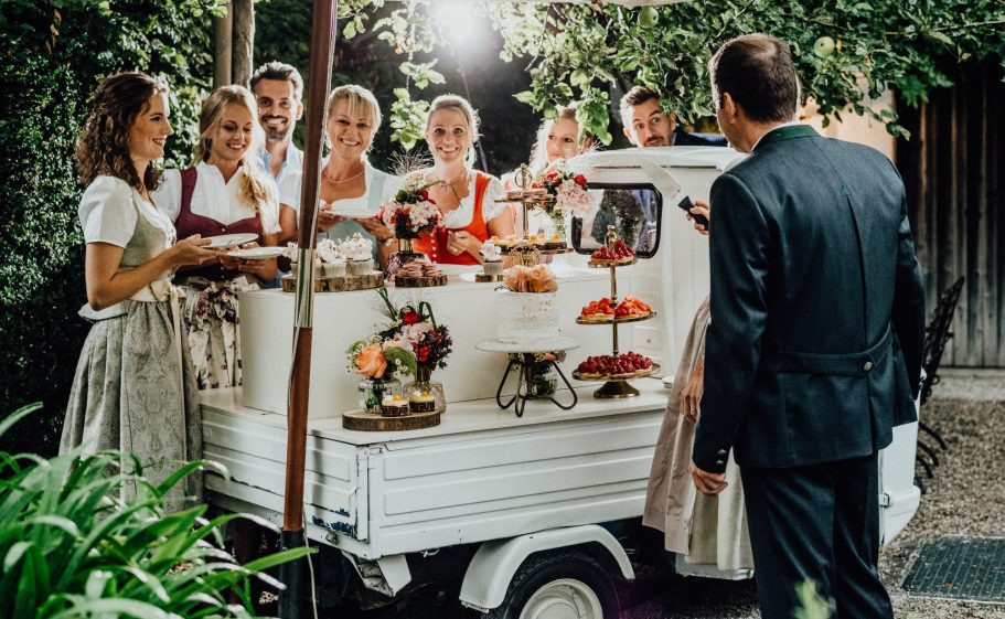 Das klassische italienische Gefährt – wird von uns unter anderem mit Etageren dekoriert - und ist somit eine einzigartige Präsentation für eure süßen Köstlichkeiten.